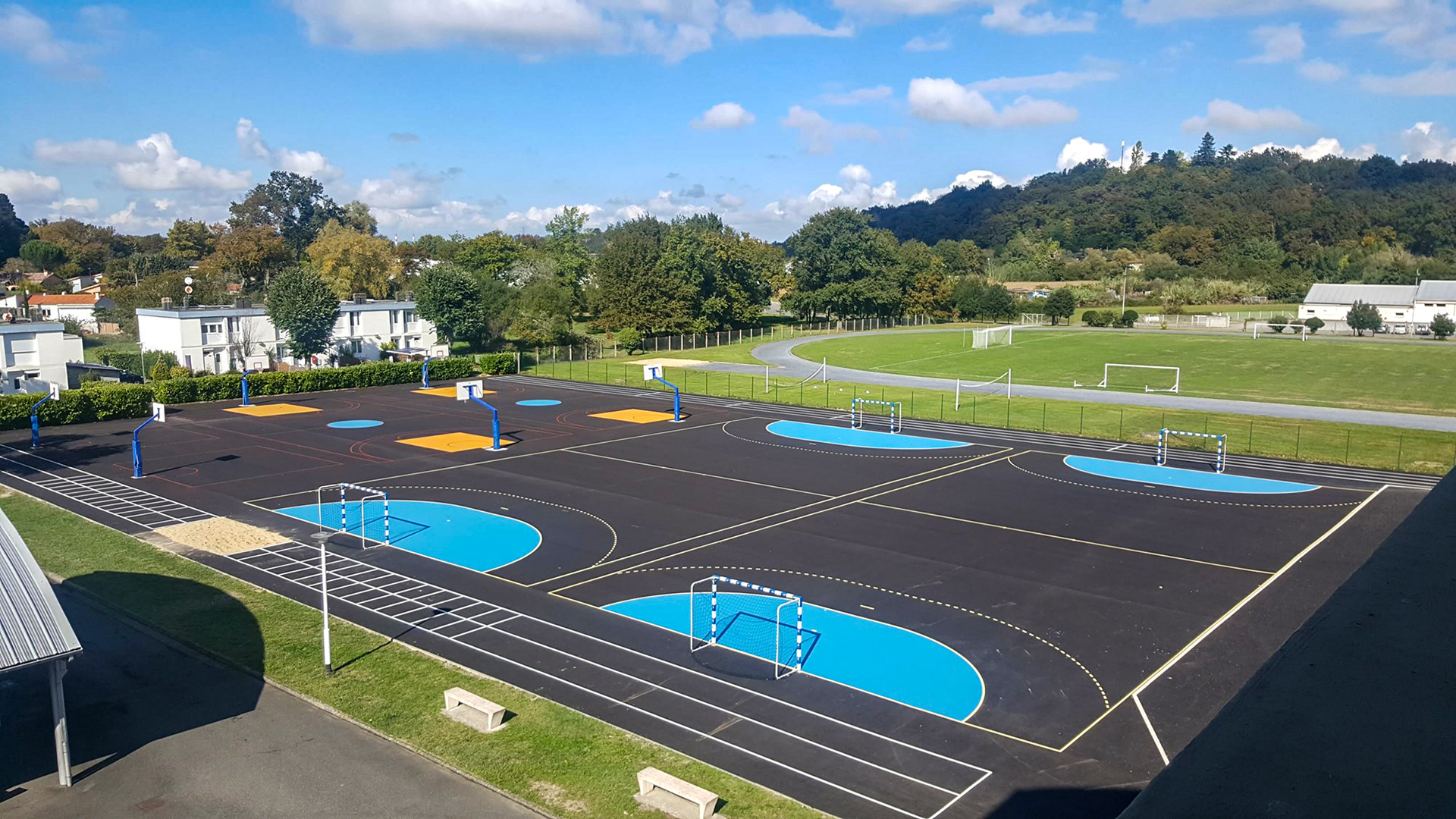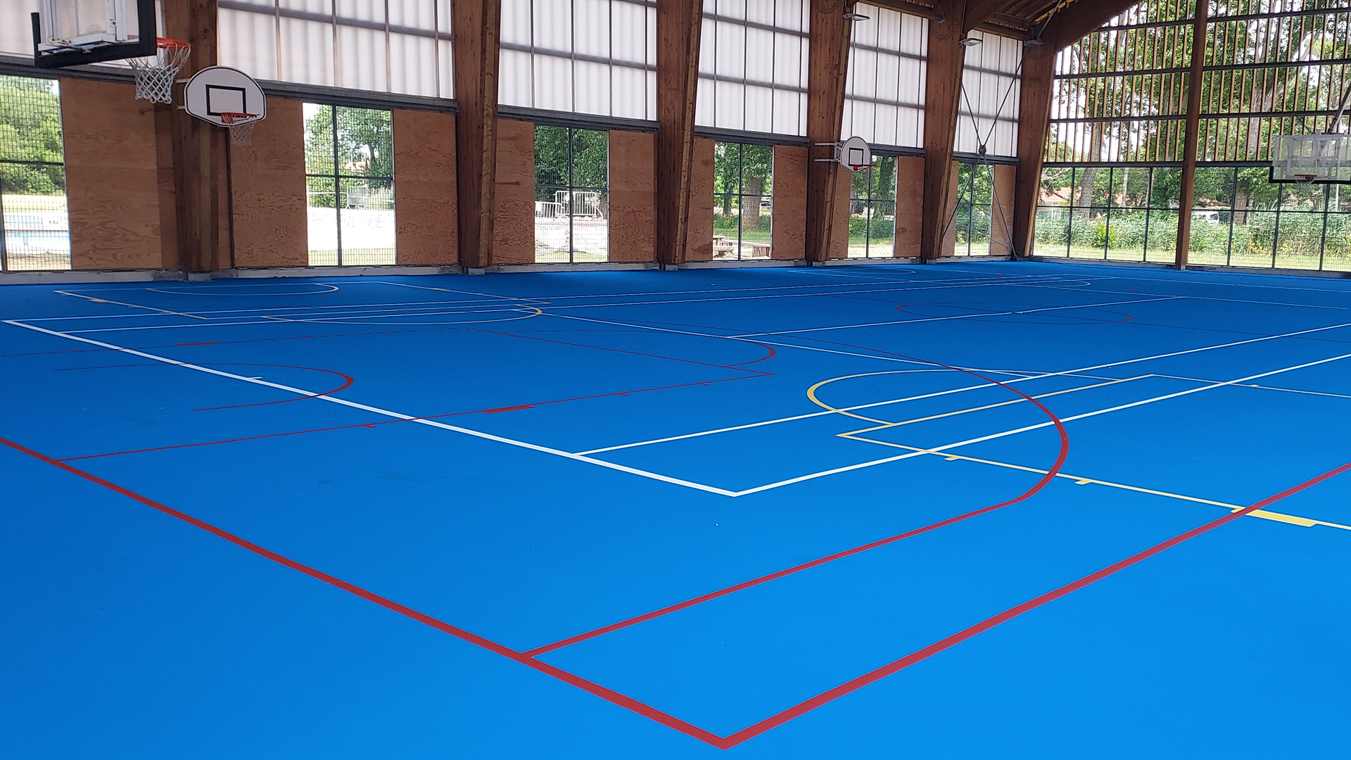 Nos solutions techniques de revêtement acrylique, peinture acrylique ou gazon synthétique, proposées dans notre page tennis, peuvent toutes être transposées dans le cadre de réalisation de vos plateaux sportifs.